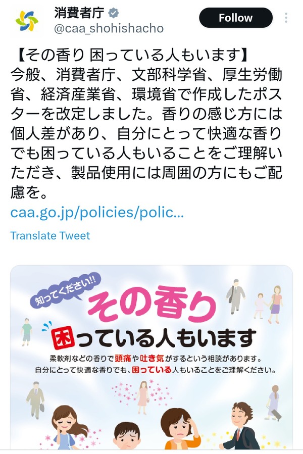 「その香り、困っている人もいます」 消費者などがポスター作成
