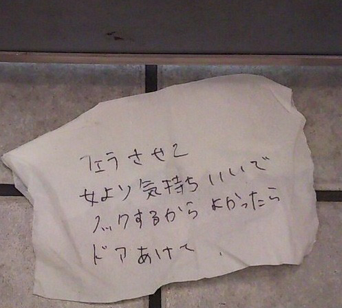 「フェラさせて、女より気持ちいいで。ノックするから良かったらドアあけて」