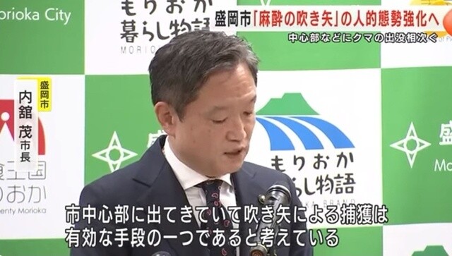 「麻酔の吹き矢」の人的態勢強化へ 盛岡市長が吹き矢を使った捕獲重視を示す 中心部などにクマの出没相次ぐ 岩手県