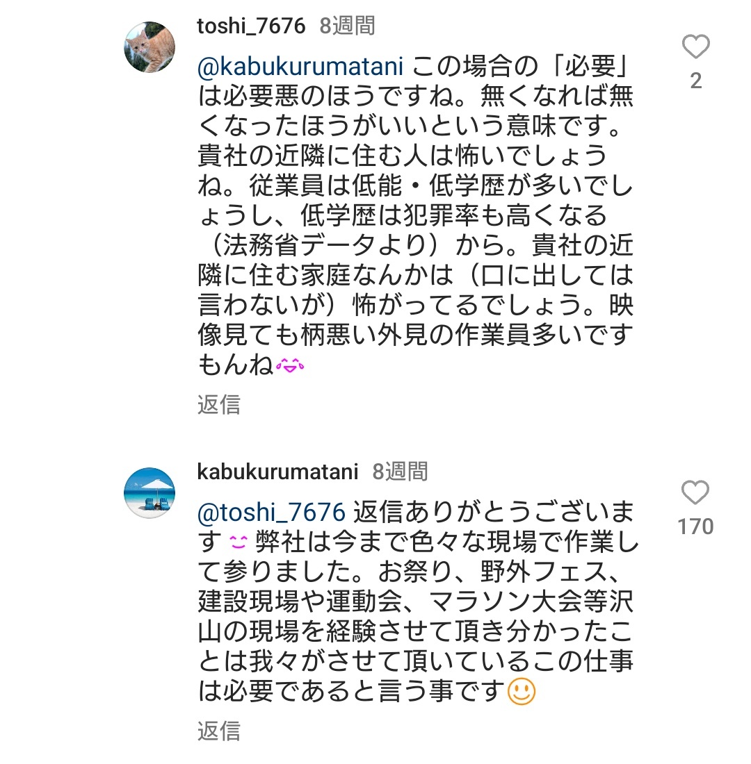 【レスバ】業者「仮設トイレ撤去してます!」上級国民様「勉強しないとこんな仕事にしかつけないんですね」