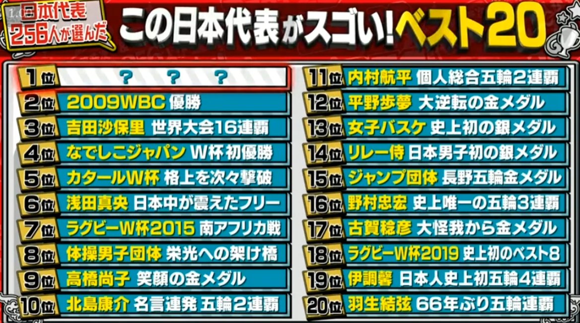 1位は2023年WBCだそうです1 名前:名無しさん@おーぷん[] 投稿日:23/09/12(火) 09:22:22 ID:Drgt一般の方からの感想に心救われました羽生結弦が20位は、いくら何でもおかしいこれだからマスコミの印象操作がな番組楽しみしてたのに、悲しい今年の日テレなんか謎#この日本代表がスゴい pic.twitter.com/SarYcgIETQ— momi??・ ??????(もみみ) (@momi_nyannyan) September 11, 2023 それ。流石に1.2が野球は変でしょw最近のスポーツ番組は野球への印象操作がえげつないと思う— tomorrow (@tomorrow6172) September 11, 2023 2 名前:名無しさん@おーぷん[] 投稿日:23/09/12(火) 09:23:27 ID:ffHlタニ信とハニュ信の争いとか言うこの世の地獄4 名前:名無しさん@おーぷん[] 投稿日:23/09/12(火) 09:24:16 ID:5ppk申し訳ないがこいつはもうオワコンじゃん続きを読む
