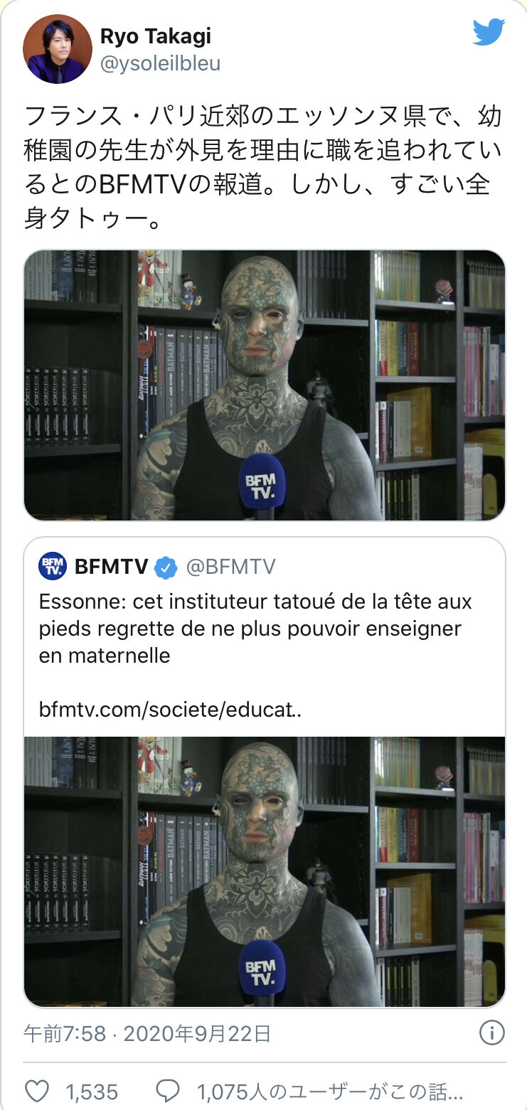 【悲報】フランス人保育士さん、タトゥーを理由に保育園をクビになってしまう