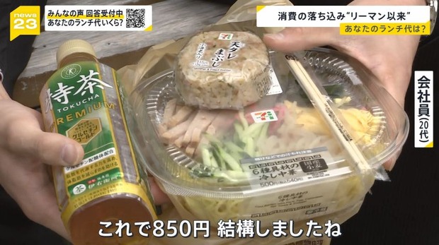 【悲報】サラリーマン「コンビニで質素な昼ご飯買ったら850円もした