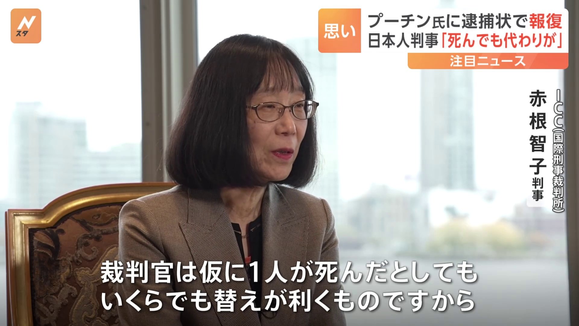 1 名前:名無しさん@おーぷん[] 投稿日:23/12/08(金) 10:37:51 ID:33kz「裁判官が死んでも代わりがいる」プーチン大統領に逮捕状を出した日本人 国際刑事裁判所の赤根智子判事 現在ロシアから指名手配 https://t.co/kfMlerShpC— TBS NEWS DIG Powered by JNN (@tbsnewsdig) December 7, 2023 2 名前:名無しさん@おーぷん[] 投稿日:23/12/08(金) 10:38:23 ID:33kzカッコいい4 名前:名無しさん@おーぷん[] 投稿日:23/12/08(金) 10:39:10 ID:jZWx国際指名手配じゃないからセーフ6 名前:名無しさん@おーぷん[] 投稿日:23/12/08(金) 10:39:35 ID:6BBaくっそかっこよくて草ですよ7 名前: