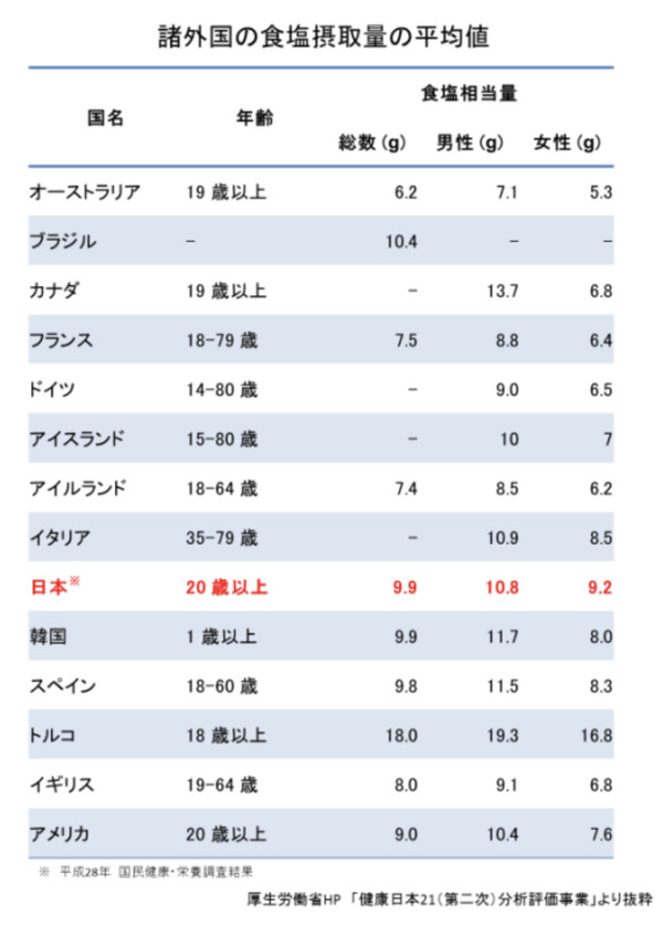 【悲報】世界各国の塩分摂取量 断トツ1位はもちろんあの国