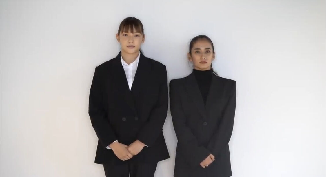 須田さんは耳にピアスをつけ、ダブルのジャケット。YURINOさんは黒いタートルネックに肩パッド入りのジャケットを羽織っている。正式な謝罪動画として公開しているにもかかわらず、2人ともかなりカジュアルな装いなのだ。