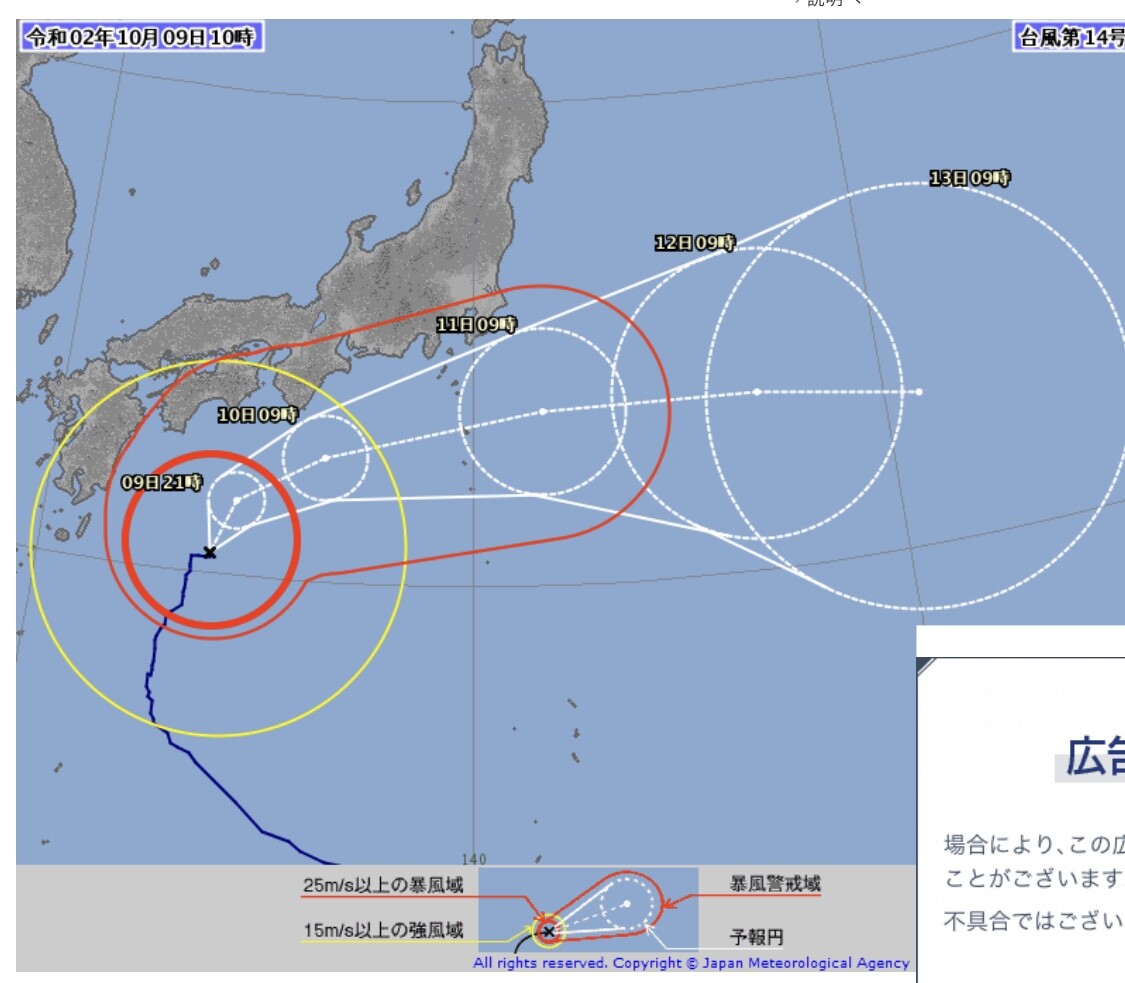 昨日までの予報よりも大幅に南へ暴風域すらたいしてかからん模様