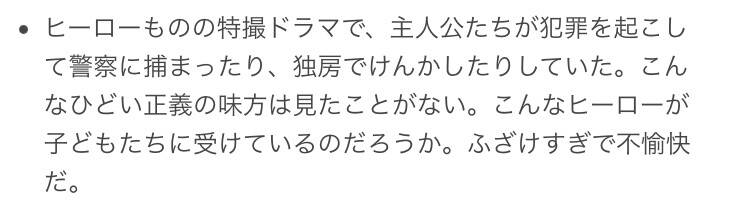 4:ななし:2023/01/26(木) 12:25:04.90 ID:ybPchu5vMどう考えてもそんな真面目に見る作風じゃないやろ5:ななし:2023/01/26(木) 12:25:59.42 ID:X1pGAGyFaいい大人がこんなギャグ戦隊真面目に見てるのか6:ななし:2023/01/26(木) 12:26:59.52 ID:ybPchu5vM>>5