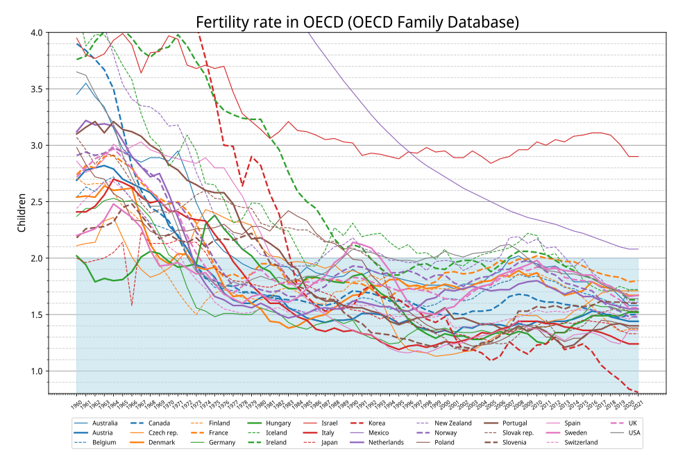 ↑OECD各国の合計特殊出生率急落してる赤い点線が韓国3 名前:名無しさん@おーぷん[] 投稿日:23/04/28(金) 17:57:58 ID:0C2s着地してて草6 名前:名無しさん@おーぷん[] 投稿日:23/04/28(金) 17:58:26 ID:iqHnじゃぽんさんもまぁまぁヤバいやん7 名前:名無しさん@おーぷん[] 投稿日:23/04/28(金) 17:58:28 ID:wg1Lこうして見ると韓国だけズバ抜けて低いんやな8 名前:名無しさん@おーぷん[] 投稿日:23/04/28(金) 17:58:47 ID:A2T7未来の日本やね続きを読む