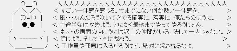 / \ /\ < すごい一体感を感じる。今までにない何か熱い一体感を。 >