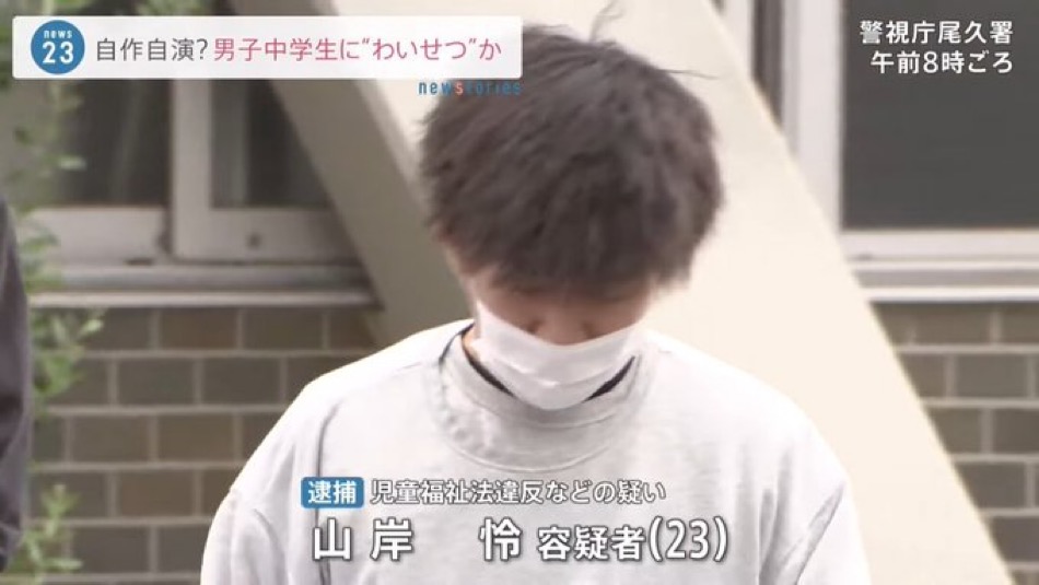 ■山岸怜(23)容疑者JCになりすまし男子とスケベ写メを交換↓「(交換した画像を)拡散されたくなければ男同士で性器を触りあう写真を撮れ」と脅迫↓学生が容疑者へ相談↓容疑者「仕方ないから頑張って撮ろう」