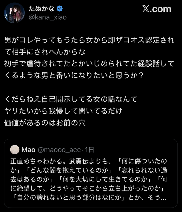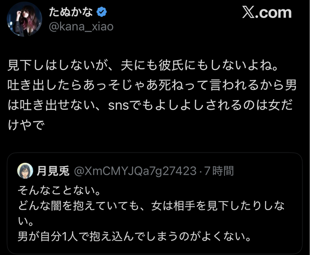 【悲報】X民「男は女に弱味を見せろ」←たぬかな姫が噛み付くWWWWWWWWWWWWWWWWWWWWWWWWWWWWWWWWWWWWWWWWWWWWWWWW