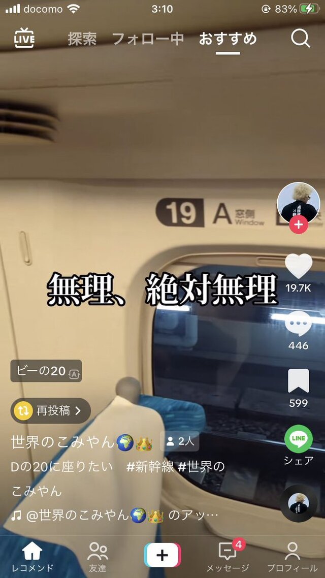 【画像】新幹線まんさん「イヤァーー!指定席で隣の席に男の人座ってる!!ムリ!絶対無理!!」