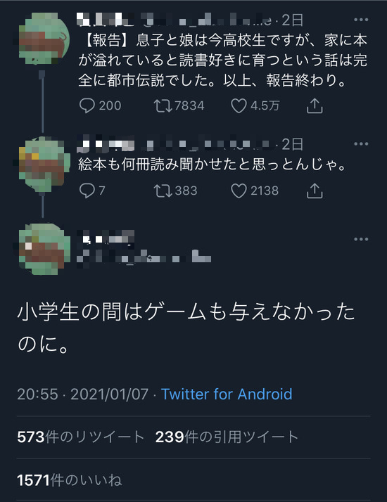 【画像】「本を与えたら子供が本好きになるとか嘘!ゲームもやらせなかったのよ?(怒)」