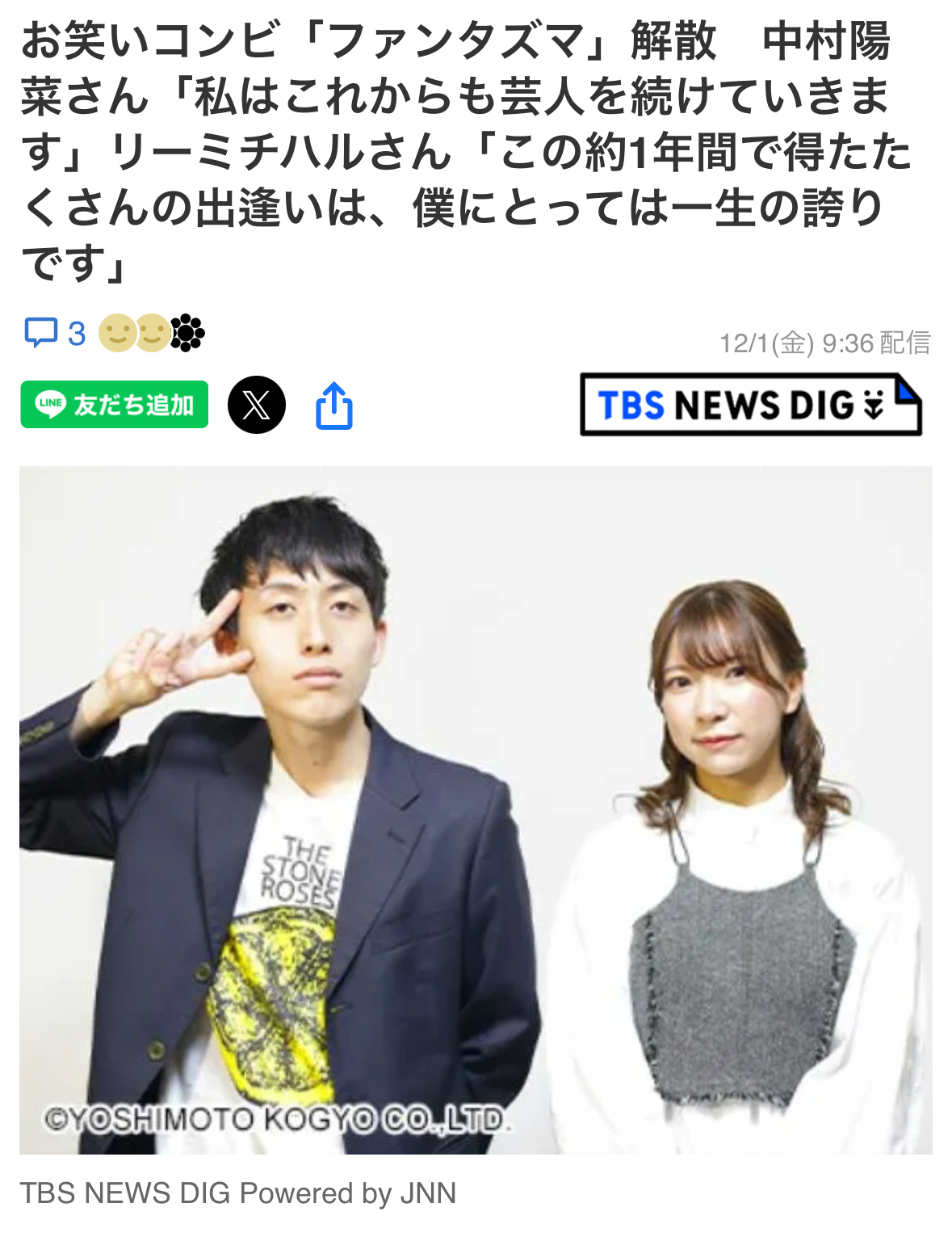 美人お笑いコンビ「ハイツ友の会」、解散