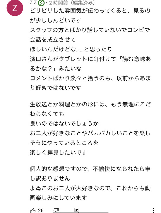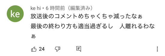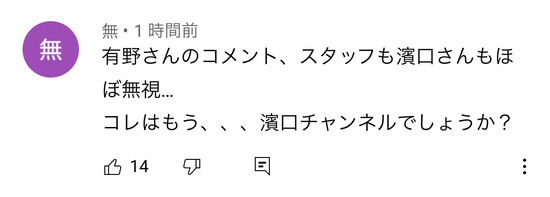 コメントの名前に緑のマークがついてるのはお金払ってメンバーシップに入ってるよゐこ大好き人間なのにそんな奴らにまで苦言呈されるレベルでひどい模様