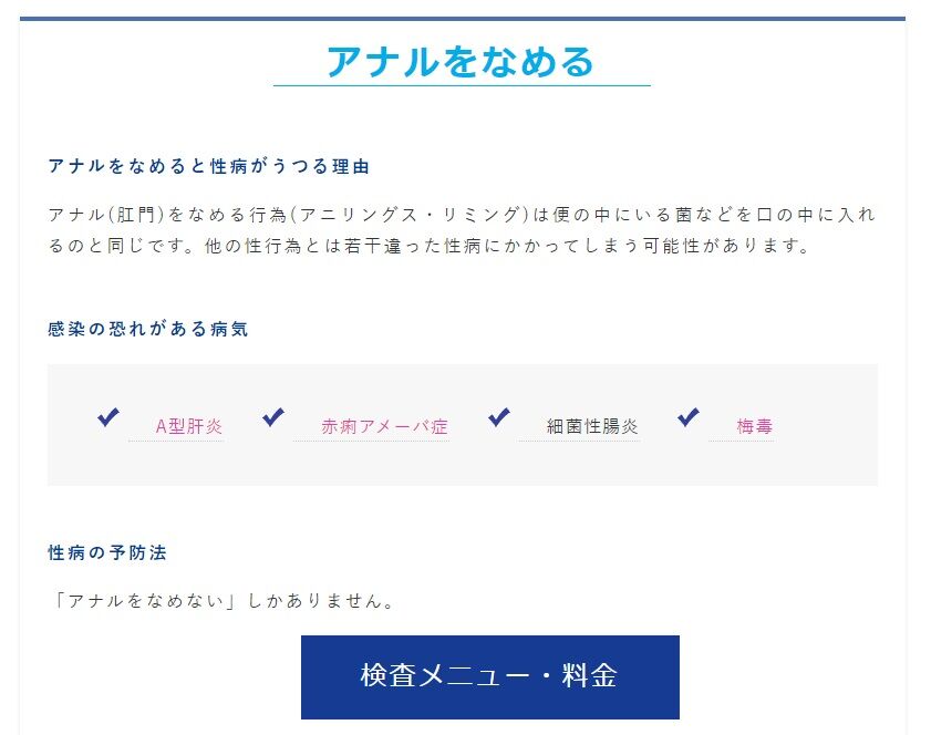 https://sti-check.com/medical/details/%E3%82%A2%E3%83%8A%E3%83%AB%E3%82%92%E3%81%AA%E3%82%81%E3%82%8B/