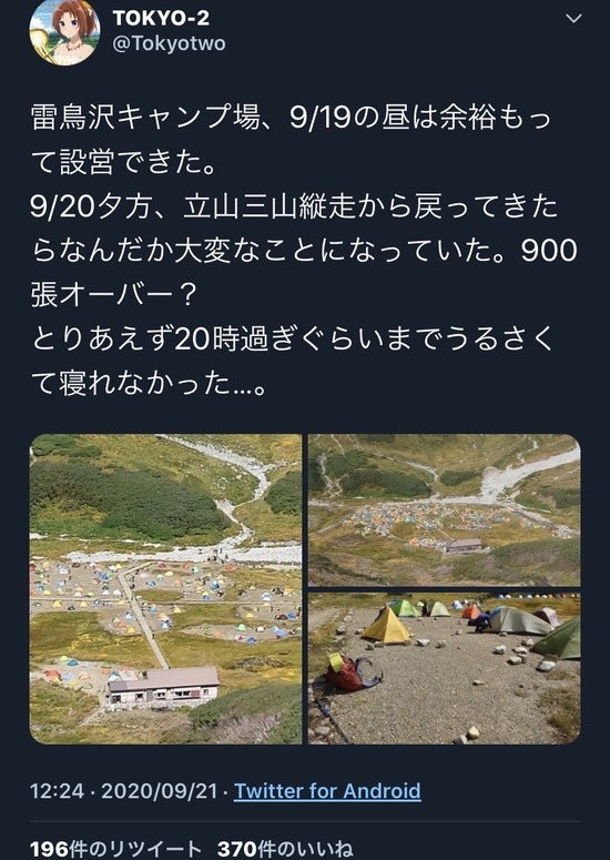 【画像】アウトドアブームでテント泊が大人気www
