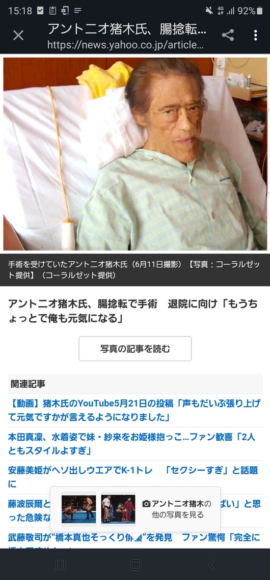 現在は回復傾向にあり、この日、猪木氏は電話でコメントを寄せ、復活への意欲をにじませた。体重は激減しているが、「もうちょっとで俺も元気になる」と退院を目標に前を向いた。