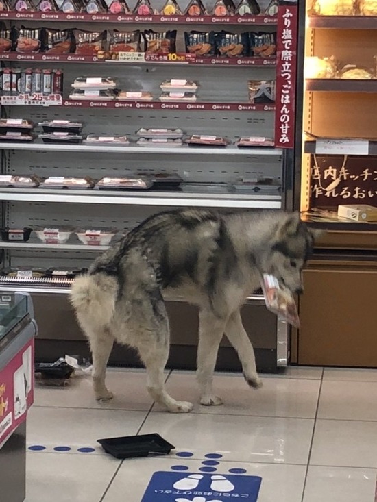 【画像】イッヌさんコンビニに不法侵入し弁当食い散らかすwwwwww