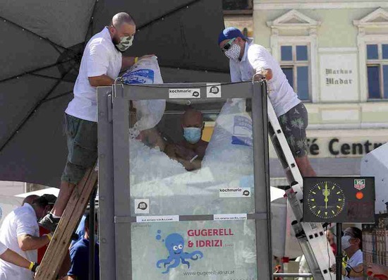 【画像】オーストリアの男性が氷の中で2時間半過ごす・・・