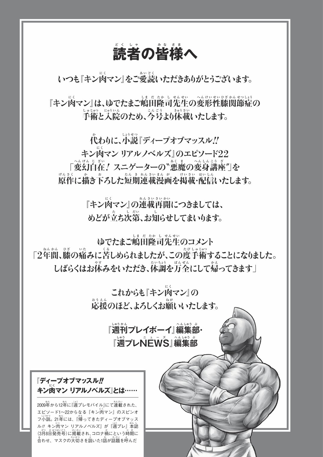 【画像】キン肉マン、いいところなのに作者手術のためしばらく休載・・・