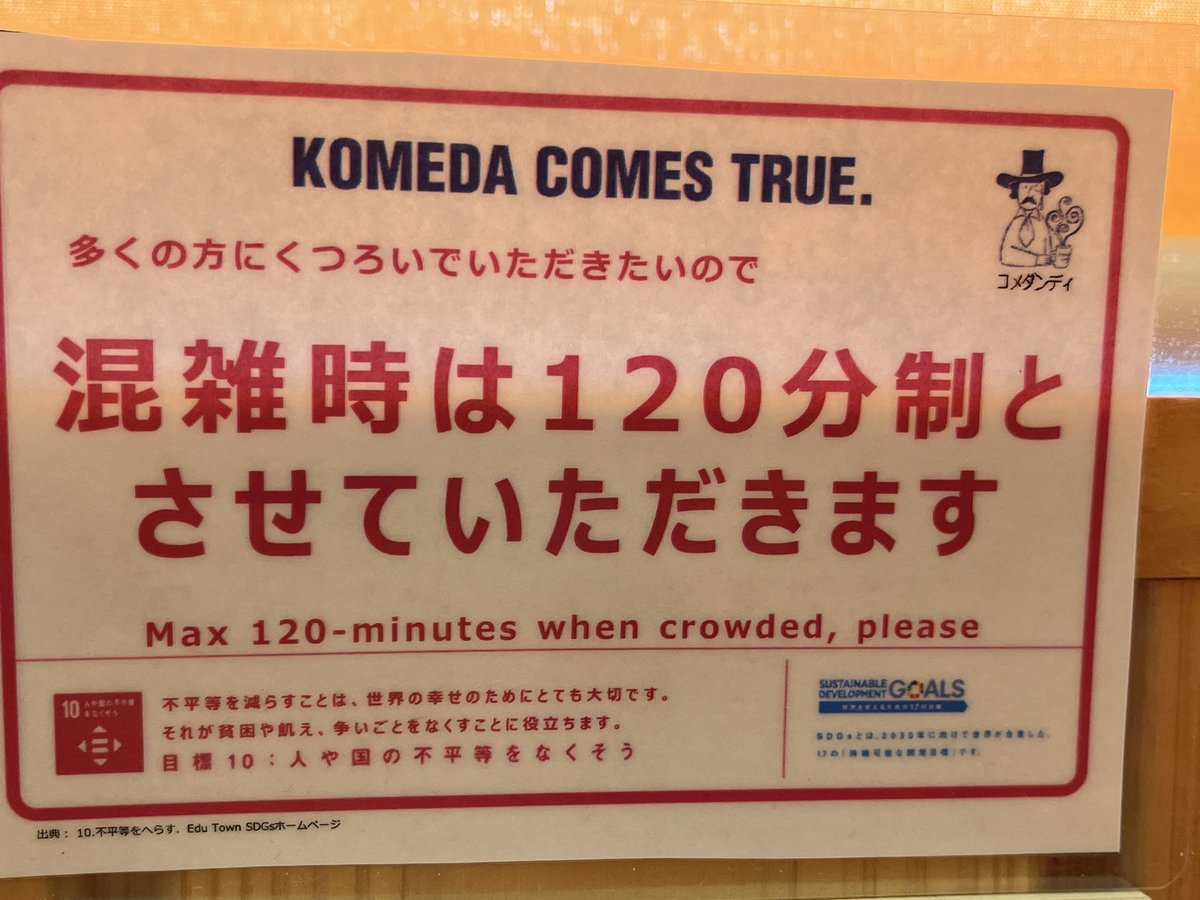 【画像】コメダ珈琲店「長時間の居座りはSDGs違反です。世界の幸せのために退席してください」→大炎上wwwwwww