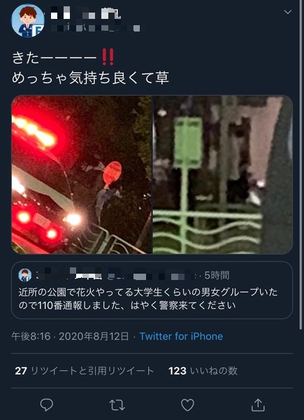【画像】チー牛さん、リア充に爆発して欲しいがあまり通報してしまうwwwwwwww