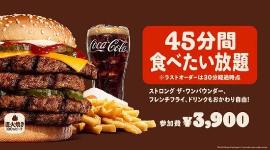 【画像】バーガーキング、今日から食べ放題イベントを開催。参加費は3900円www