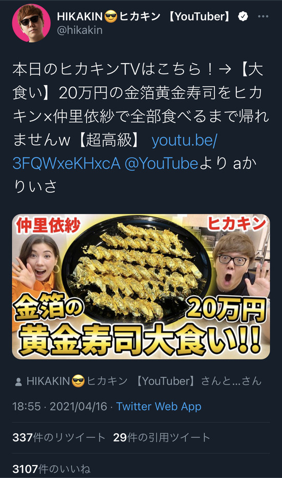 【画像】ヒカキンさん、ついに金の塊を平らげる!!!!wwwwwww