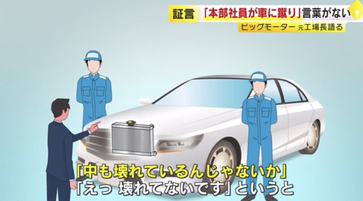 【画像】ビッグモーター上司「この車壊れてるよな?」部下「いいえ」上司「ほら壊れてるよ」ドカァ!!!