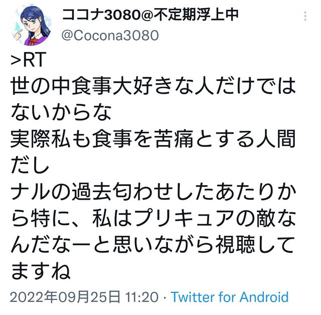 【画像】プリキュアさん、食事を楽しめない人を悪人として描いてしまいTwitterで炎上www