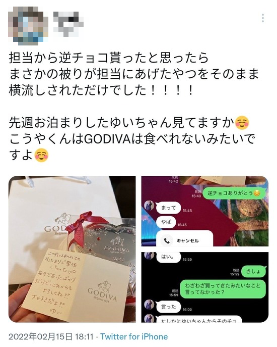 【画像】ホスト、貰ったチョコを別の女に横流ししてしまうwwwww