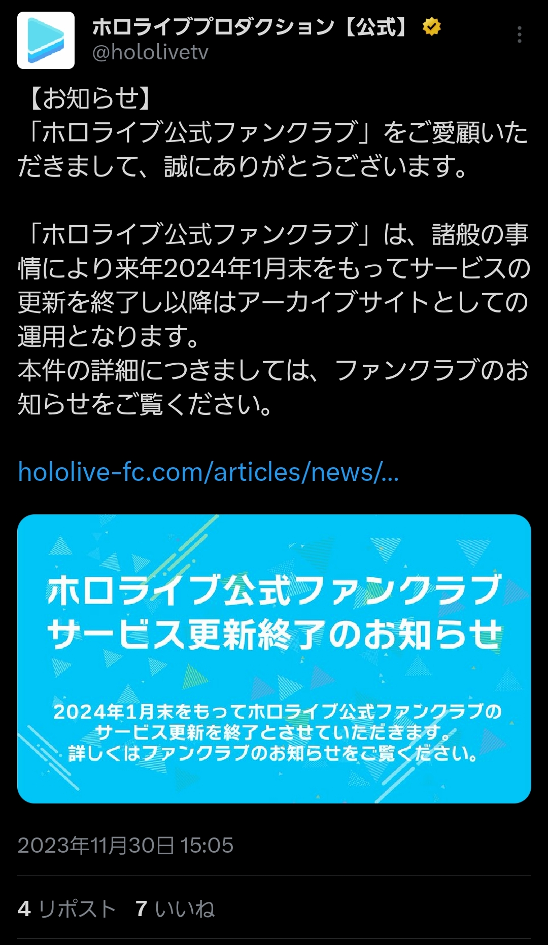 【画像】ホロライブさん、公式ファンクラブ終了してしまう・・・