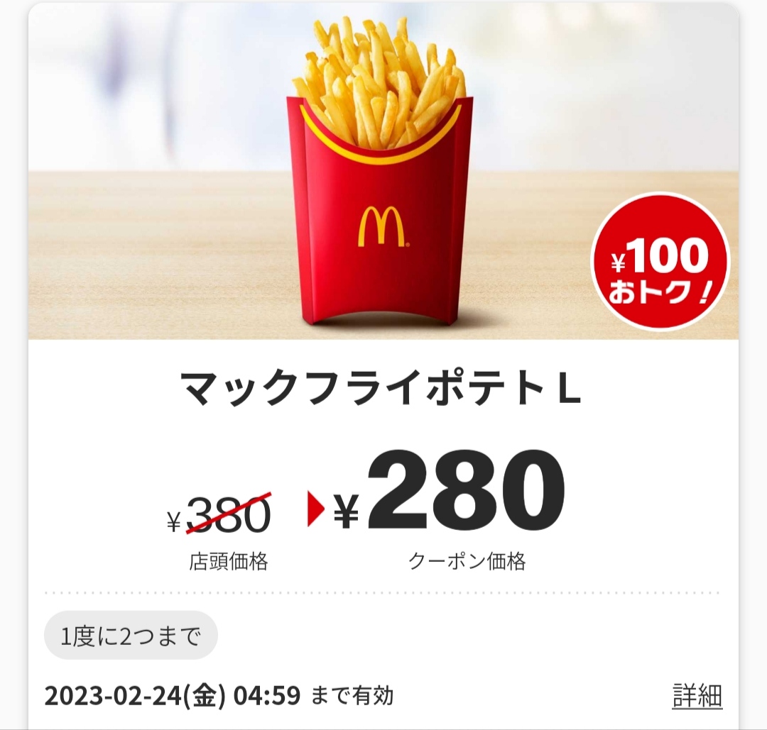 【画像】マクドナルドさん、ついにフライポテトの割引券を発行してしまうwwww