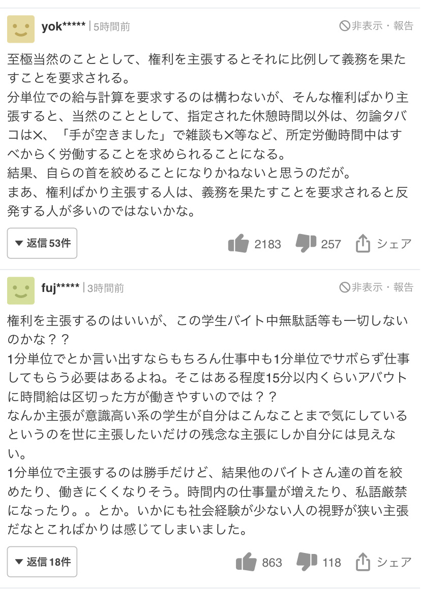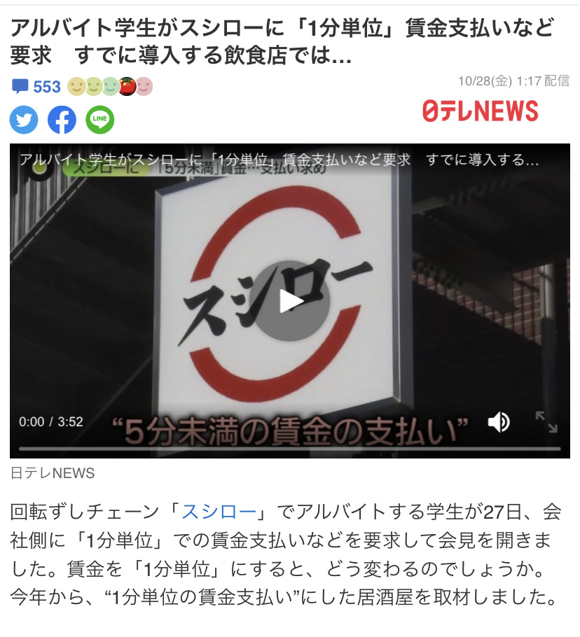 【画像】ヤフコメ民さん、スシローのアルバイトが1分単位での賃金支払いを求めたニュースにブチギレwww