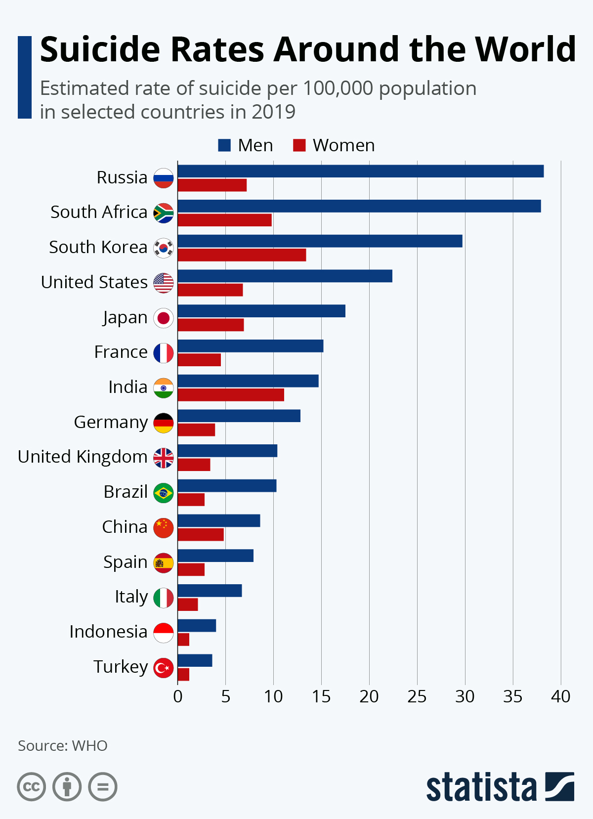 【画像】ロシアの自殺率、やばすぎる・・・・・