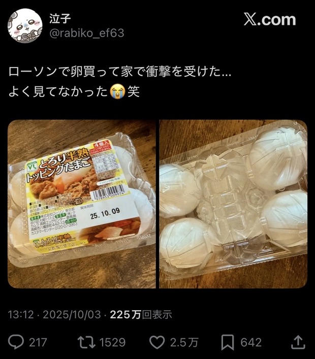ローソンで卵買って家で衝撃を受けた…よく見てなかった😭笑