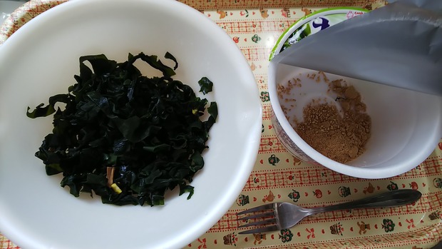 イオンの68円麺と麺なしワカメラーメンで、これを