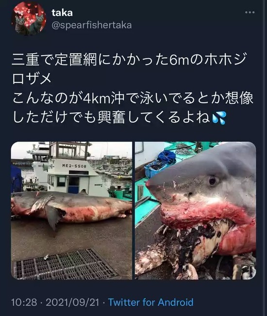 【画像】三重県の定置網にJAWSがかかるwwwwwwwww