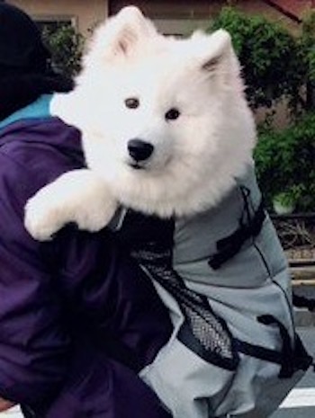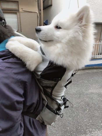 ちなみにこのリュックは犬用で、ゴールデンレトリバーなどの大型犬にも対応しているのですが、ソランくんにはちょっとみちみち感もあります。小さい頃から入っていたので、意外とのびのび過ごしているそうですよ。