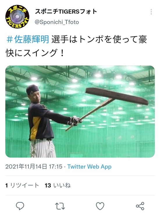 【画像】佐藤輝明、トンボで素振りを始めるwwwww