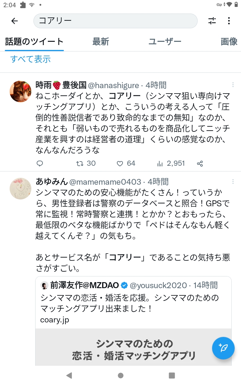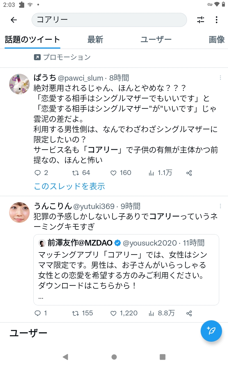 【画像】前澤さん監修のシングルマザー限定マッチングアプリ、かなり不評wwww