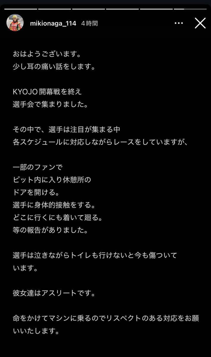 【画像】女性レーサーさん、泣きながらトイレも行けないと傷ついてしまう…