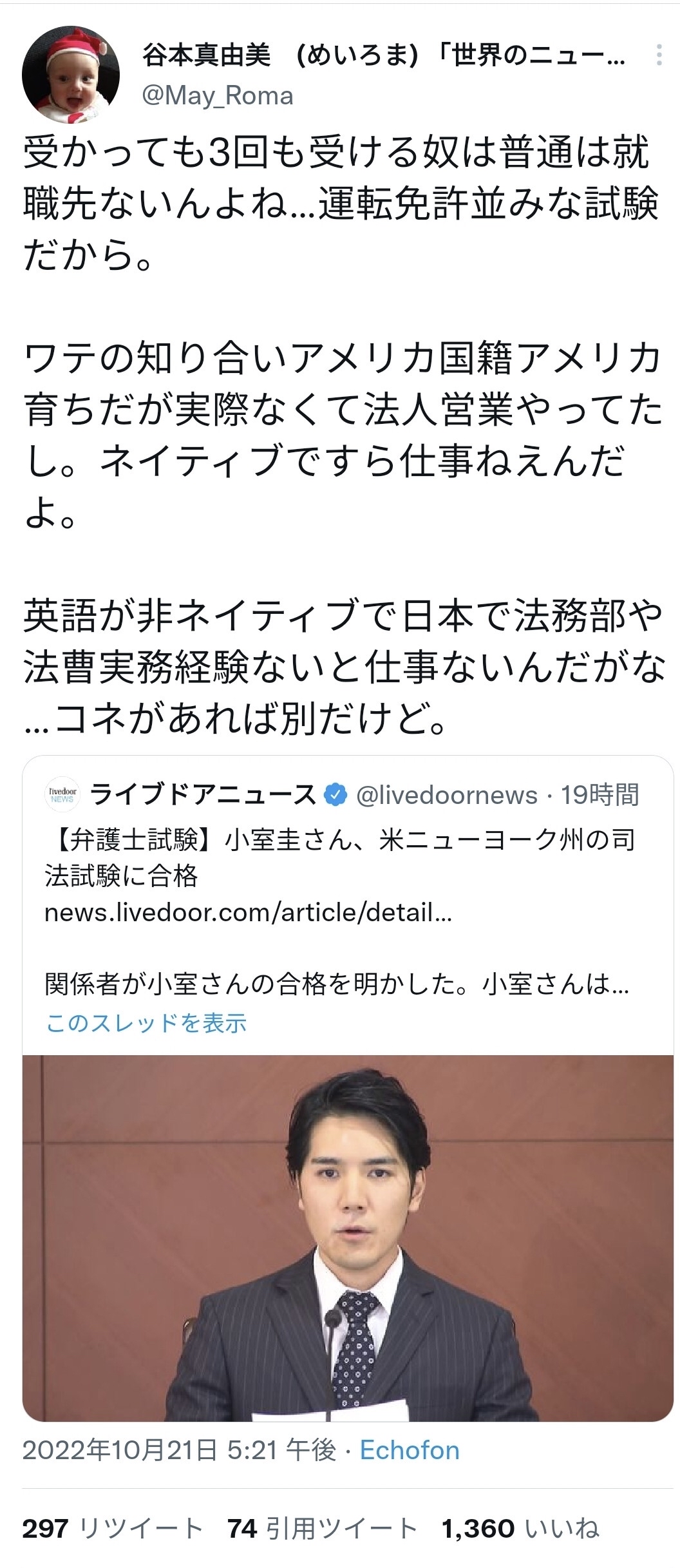 【画像】小室圭嫉妬民、ついに試験の難易度叩きに切り替えwwwww