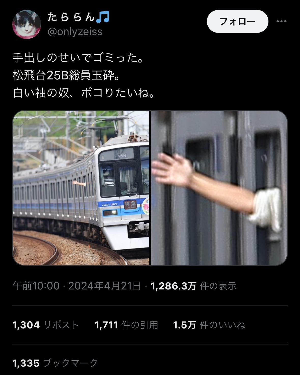 手出しのせいでゴミった。松飛台25B総員玉砕。白い袖の奴、ボコりたいね。 pic.twitter.com/7wDRDtm1SM— た ら ら ん🎵 (@onlyzeiss) April 21, 20242 : 以下、?ちゃんねるからVIPがお送りします :2024/04/22(月) 22:41:30.970 ID:UMSJ602G0.netわろた3 : 以下、?ちゃんねるからVIPがお送りします :2024/04/22(月) 22:41:38.558 ID:p8kftuL00.net乗り鉄圧勝じゃんwww転載元スレッド:https://viper.2ch.sc/test/read.cgi/news4vip/1713793242/続きを読む