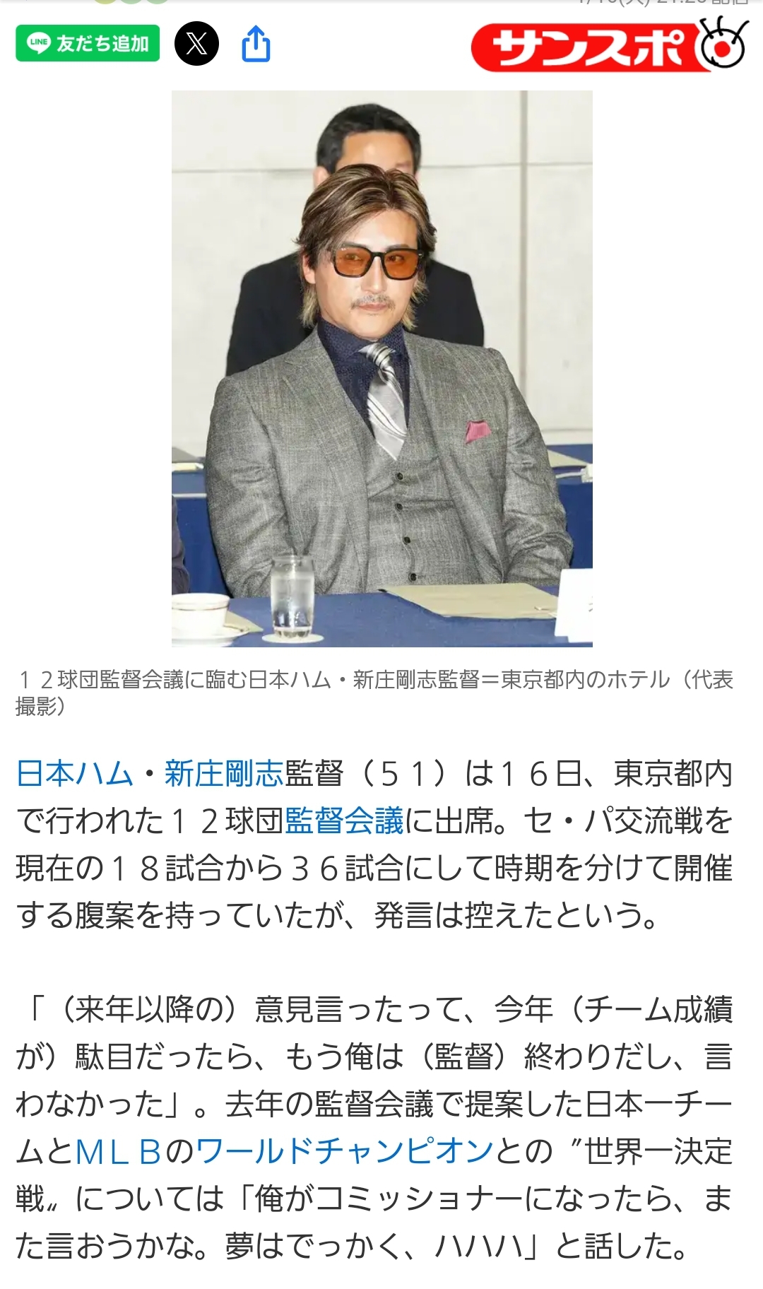 【画像】新庄剛志「来年以降の意見言ったって今年成績ダメなら俺監督終わりだし」