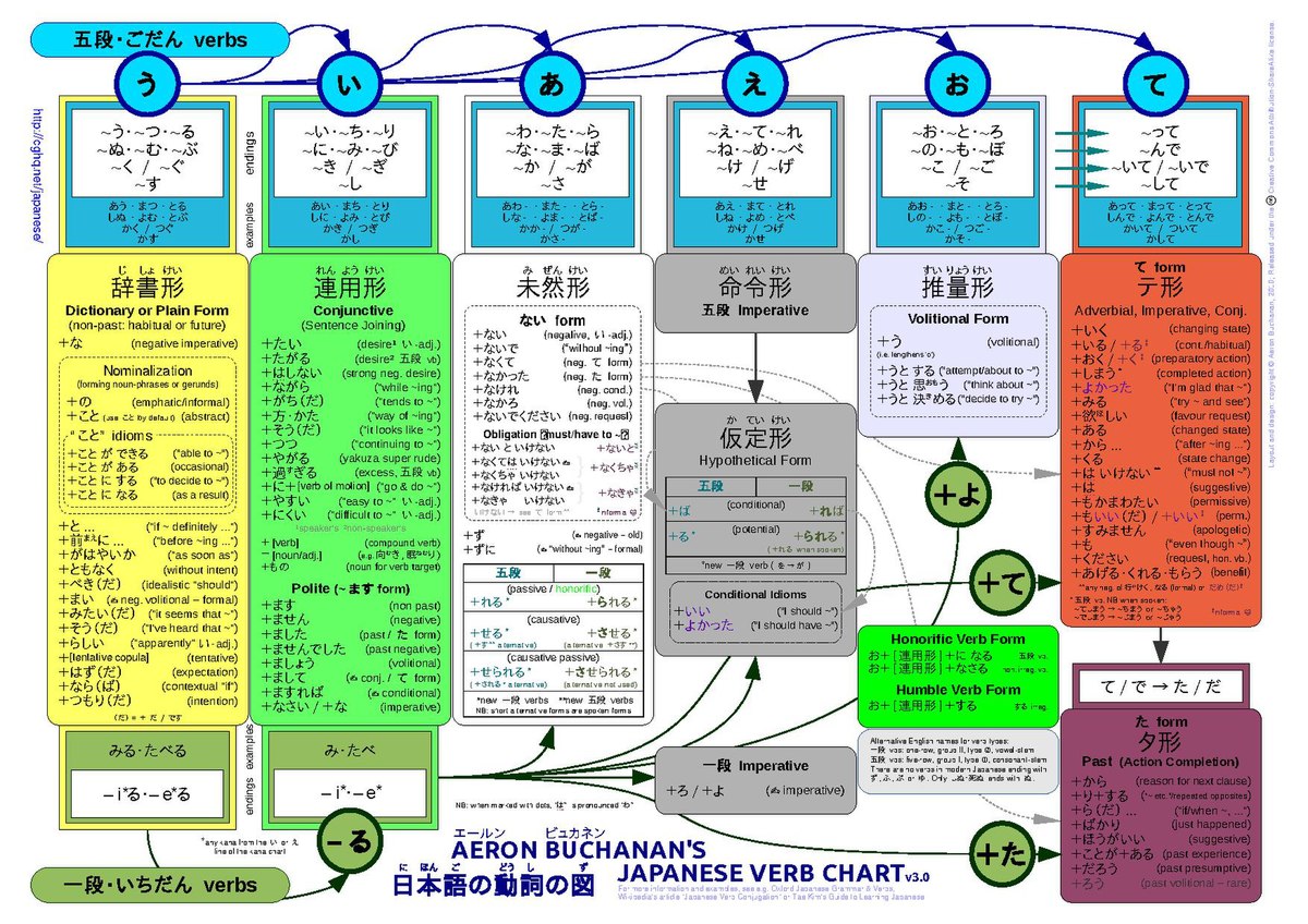 【画像】日本人「英語むずすぎるだろ...」外人「これが日本語動詞の活用形の表だけど...」