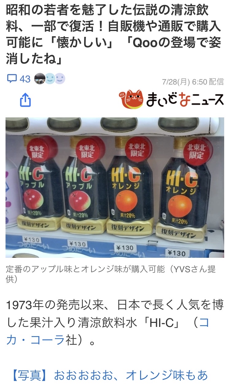 昭和の若者を魅了した伝説の清涼飲料、一部で復活!自販機や通販で購入可能に「懐かしい」「Qooの登場で姿消したね」(まいどなニュース) - Yahoo!ニュース
