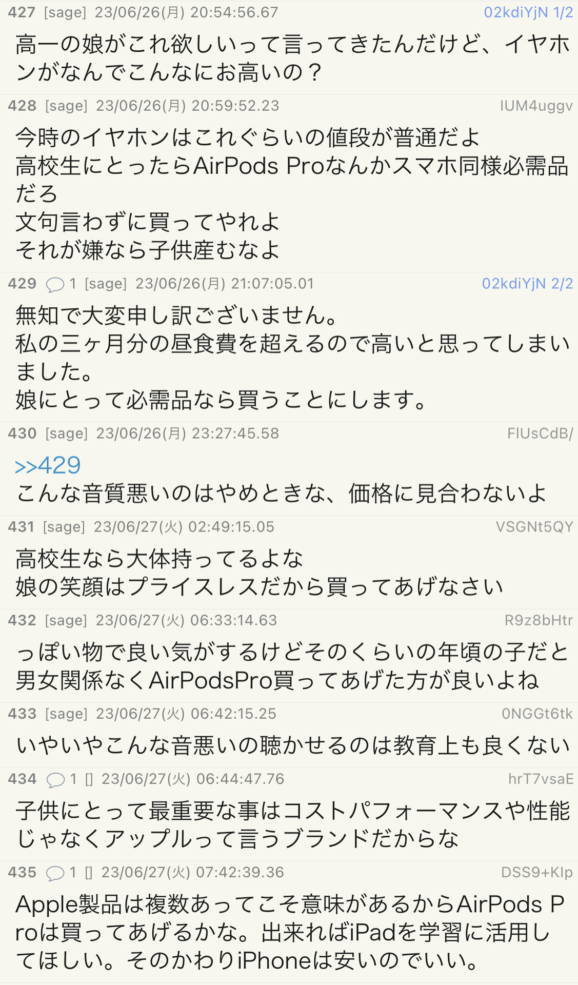 【画像】父親「高1の娘にAirPods Proが欲しいとせがまれました。買ってあげるべきですか?」大論争に発展www